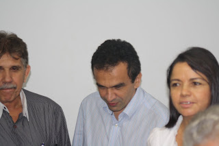 Elizeu Aguiar, da comitiva do prefeito Elmano Férrer, entre Florentino Filho e a Vereadora Teresa Britto. (Foto: Valdecy Costa).